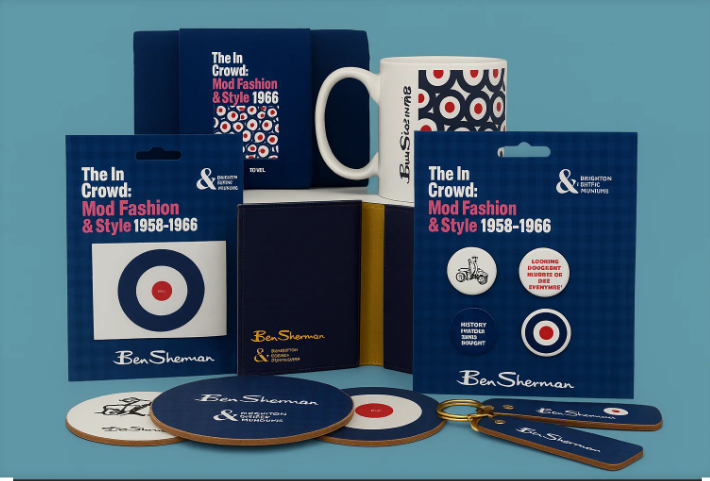 A product range with iconic Mod designs produced in partnership with Ben Shermanfor The In Crowd: Mod Fashion & Style 1858-66 exhibition at Brighton Museum.
